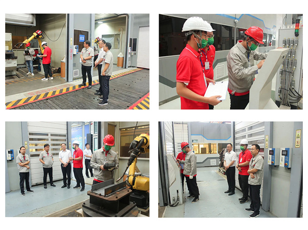 在攪拌車自動(dòng)焊接線實(shí)操考試現(xiàn)場(chǎng),選手們對(duì)機(jī)器人進(jìn)行編程、設(shè)置參數(shù),根據(jù)工件需要焊接的位置,反復(fù)調(diào)整機(jī)器人的運(yùn)動(dòng)軌跡,力求做到焊接時(shí)的準(zhǔn)確度。裁判員們根據(jù)程序編寫、焊接效率、焊接位置、焊縫完整度等指標(biāo)進(jìn)行評(píng)判。賈主席一行在考試工位前駐足,不時(shí)詢問(wèn)設(shè)備運(yùn)行情況,詳細(xì)了解選手們操作流程,對(duì)大家精彩表現(xiàn)表示肯定。