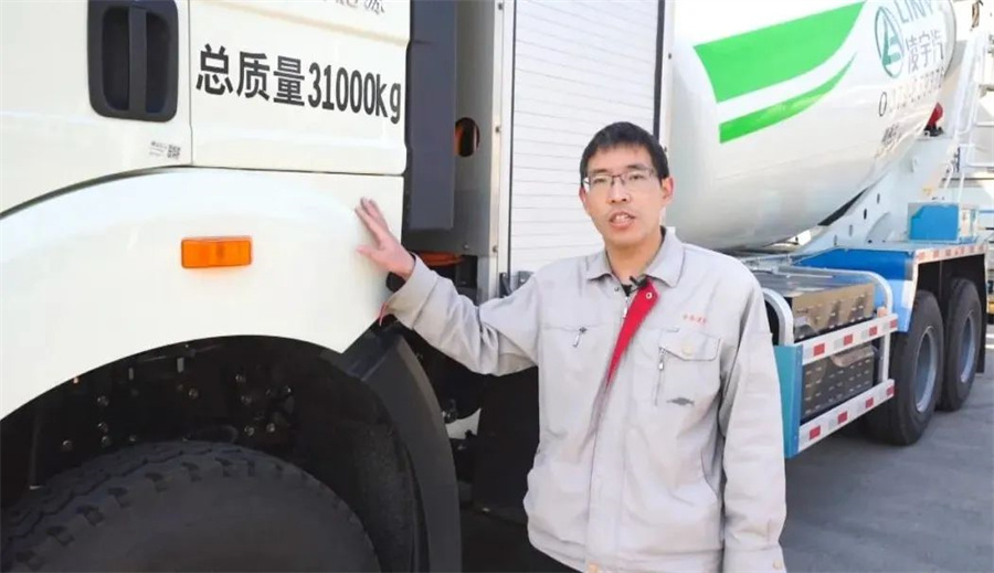 在搶答互動環(huán)節(jié)后,中集凌宇攪拌車技術部產(chǎn)品項目經(jīng)理許國偉及宇通攪拌車產(chǎn)品管理工程師李飛以“云端直播”的形式為觀眾帶來解放、陜汽及宇通三款新能源攪拌車實車現(xiàn)場的360度講解。